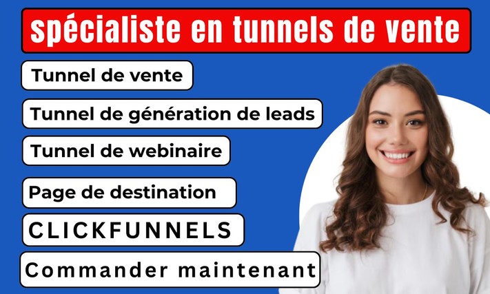 Je crée des tunnels de vente complets, clairs et efficaces sur Clickfunnels, conçus pour générer des leads, vendre vos offres et automatiser votre business sans stress.