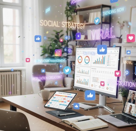 • Audit & Stratégie Social Media : Analyse de votre présence actuelle, définition des objectifs (notoriété, engagement, conversion) et création d'une ligne éditoriale sur-mesure (Instagram, LinkedIn, TikTok, X).