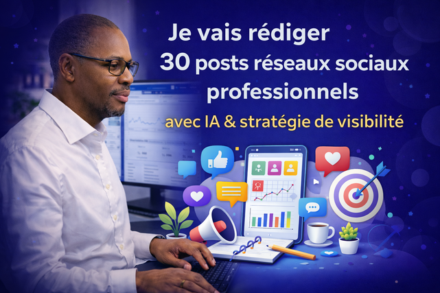 Je vais rédiger 30 posts réseaux sociaux professionnels avec IA et stratégie de visibilité