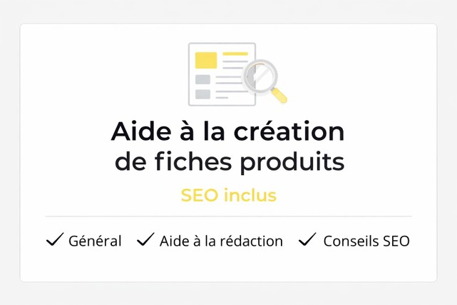Important : ce service ne comprend pas l’écriture complète d’une fiche produit. Il s’agit d’une intervention ciblée sur une seule section (titre, SEO title, meta description ou tags). La rédaction complète d’une fiche produit, avec stratégie globale et structuration avancée, fait l’objet d’un service distinct, plus complet et à un tarif différent.