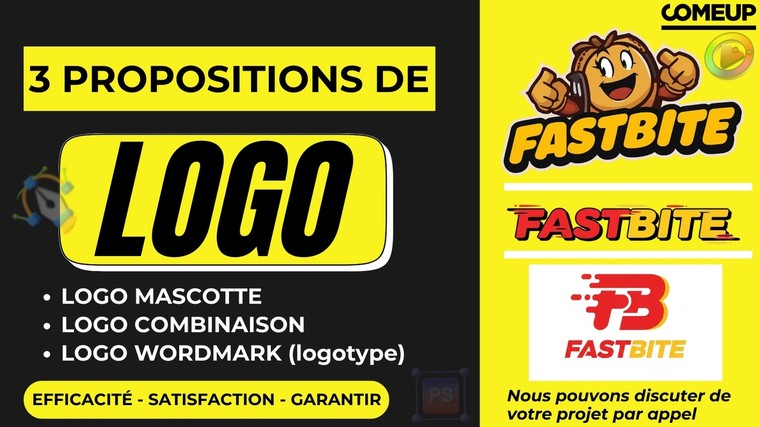 - Logo Mascotte : Un personnage mémorable qui incarne votre marque (comme l'image FastBite fournie).