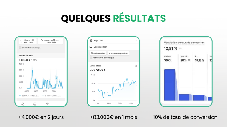 Vous aurez toutes les informations qui m’ont permis de générer plus de 2 931 385,00 $US de chiffre d'affaires en e-commerce sur Shopify.