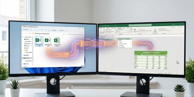 - Consolidation de plusieurs fichiers (ex: Janvier.xlsx + Février.xlsx) en un seul tableau global.