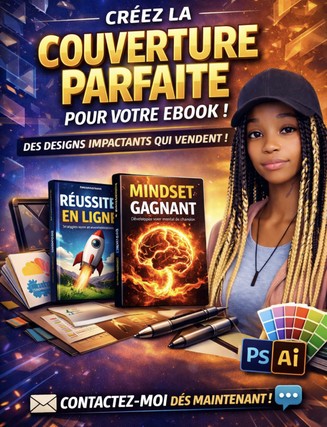 Chaque couverture est conçue sur mesure, en accord avec votre thématique, votre cible et votre image de marque, afin de valoriser votre contenu dès le premier regard. Sérieuse, réactive et respectueuse des délais, je vous garantis un rendu de qualité professionnelle prêt à être publié.