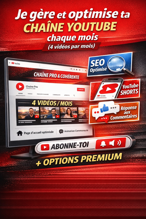 Je vais m’occuper de la gestion mensuelle de votre chaîne YouTube afin qu’elle renvoie une image sérieuse, propre et optimisée, même avec peu de vidéos.