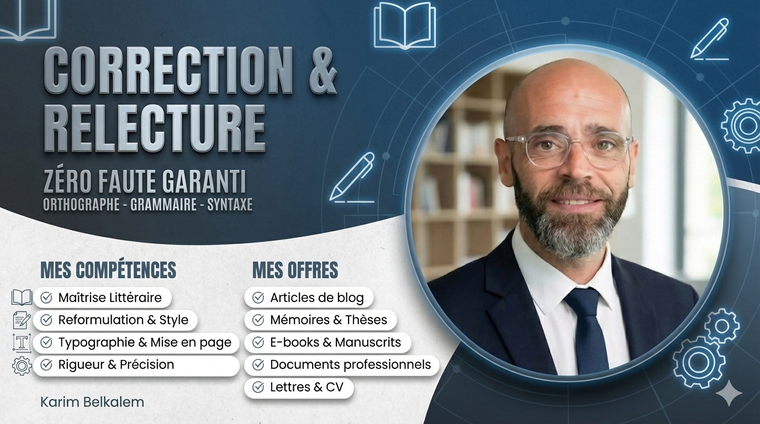 Passionné par la langue française et issu d'une formation littéraire universitaire (DAEU A), je suis un puriste des mots. Contrairement aux correcteurs automatiques qui laissent passer des non-sens, je vous propose une relecture 100% humaine, minutieuse et réfléchie.