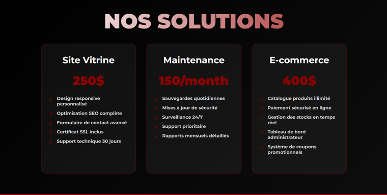 Je travaille avec des technologies web solides (HTML, CSS, JavaScript, Python) et j’accorde une grande importance à la qualité du code, à la rapidité d’exécution et à la satisfaction du client. Chaque projet est réalisé avec sérieux, communication claire et respect des délais.
