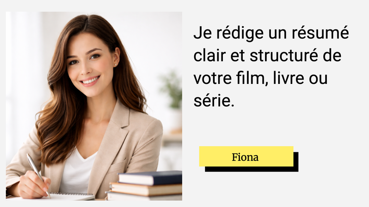 Proposé par FionaRedige •Rédactrice de résumés clairs et structurés (films, livres, articles) Vente au total 0