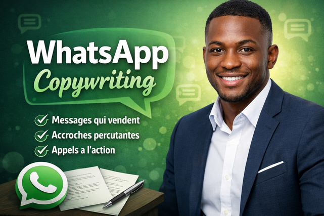 Bonjour et bienvenue 👋 Je suis copywriter spécialisé en Copywriting IA. J’aide les entrepreneurs, coachs et vendeurs en ligne à améliorer leurs messages de vente pour attirer plus de clients et convaincre plus facilement. J’utilise une combinaison de psychologie de vente + intelligence artificielle pour écrire des textes clairs, persuasifs et orientés résultats. 🎯 Objectif : transformer des mots simples en messages qui donnent envie d’acheter. Travail sérieux, communication claire et respect des délais.