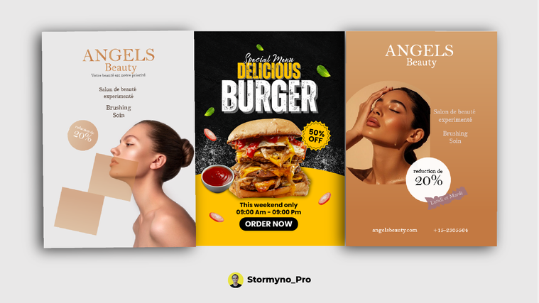 Je crée pour vous un flyer, une affiche ou un dépliant sur mesure, conçu pour capter l’attention rapidement et valoriser votre offre.