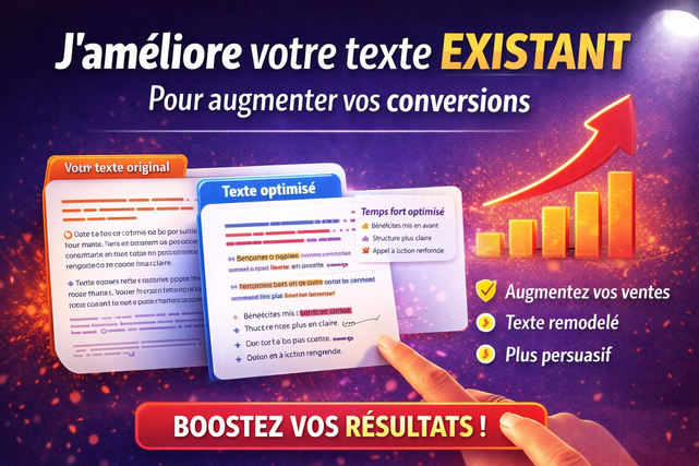 Mon objectif est simple : transformer votre texte existant en un message plus clair, plus persuasif et plus orienté action.