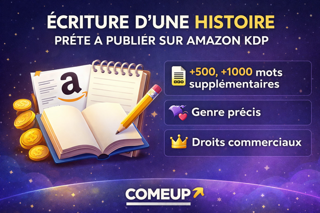 Je vous propose l’écriture d’une histoire originale, claire et agréable à lire, prête à être utilisée pour un projet Amazon KDP.