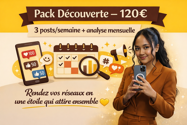 Envie de tester mes services en toute simplicité ? Lancez-vous avec le Pack Découverte et voyons ensemble comment booster votre visibilité.