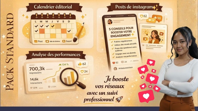 → Stratégie éditoriale complète, programmation des posts, suivi régulier et ajustements