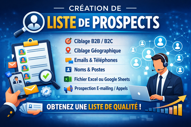 Je conçois des bases de prospects professionnelles, précises et actualisées, adaptées à vos objectifs commerciaux et à votre marché.
