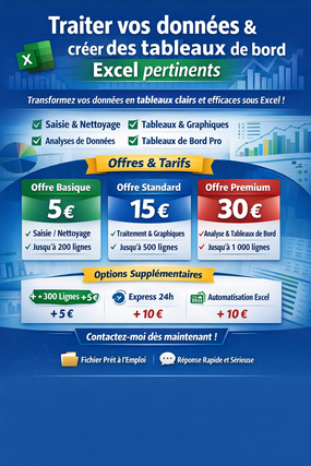 Je vais Traiter vos données et créer des tableaux de bord Excel pertinents
