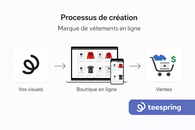 Je travaille avec Teespring (Spring), une plateforme reconnue qui permet :