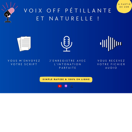 Ce que je vous propose pour 23,41 $US : Pour ce tarif, je vous enregistre un script allant jusqu'à 200 mots (ce qui est parfait pour une vidéo d'une minute vingt environ). Voici ce que vous recevez :