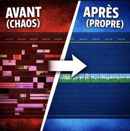 Je m'occupe de préparer votre terrain de jeu. Vous recevrez une timeline propre ou des fichiers épurés, prêts à être montés.