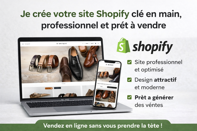 Je vais crée votre site Shopify clé en main, professionnel et prêt à vendre