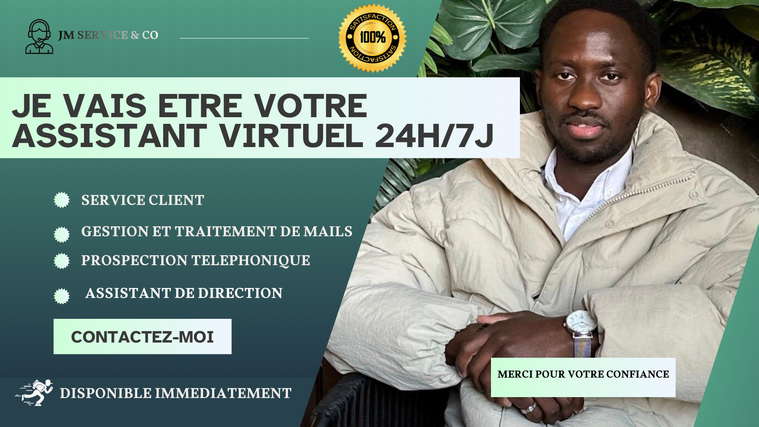 Proposé par JosueGraceMATOUMBY •Assistant Virtuel Pro | Service Client, Emails & Administration | Disponible 40h/semaine Vente au total 0