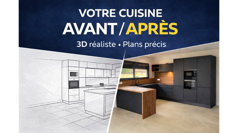 Vous souhaitez repenser votre cuisine ? Optimiser l’espace ? Visualiser le résultat avant travaux avec des images 3D réalistes et des plans exploitables ? 👉 Vous êtes au bon endroit. ⸻ 👤 Qui je suis Concepteur spécialisé en agencement de cuisines et aménagements intérieurs, avec plus de 8 ans d’expérience. J’interviens aussi bien en neuf qu’en rénovation, avec une approche fonctionnelle, esthétique et technique. ⸻ 🔧 Ce que je vous propose ✔️ Conception 3D personnalisée de votre cuisine ✔️ Rendus réalistes ✔️ Plans techniques 2D détaillés (implantation, élévations, cotations) ✔️ Adaptation aux contraintes réelles : • petites surfaces • angles non droits • murs porteurs • réseaux existants 🎯 Objectif : un projet clair, cohérent et réalisable. ⸻ 🧠 Méthode de travail • Analyse de vos besoins et du style souhaité • Optimisation de l’implantation • Choix des matériaux et finitions • Ajustements selon vos retours (jusqu’à 3 modifications incluses*) OFFRE DE BASE – 20 € ⏱️ Délai : 3 jours ✔️ Modélisation 3D ✔️ Rendus réalistes ✔️ Cuisine jusqu’à 20 m² ⸻ ➕ OPTIONS DISPONIBLES • Cuisine de 20 à 30 m² → +20€ (+1 jour) • Cuisine de 30 à 40 m² → +25 € (+1 jour) • Cuisine supérieure à 40 m² → +35 € (+2 jours) • Plans techniques 2D (plan + élévations) → +15 € Livraison express possible Fichiers livrés • Images JPEG / PNG • Plans PDF Résultat Une cuisine fonctionnelle, esthétique et prête à être exécutée.