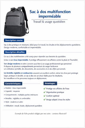 Vous pouvez me fournir les informations produit ou je peux reformuler vos contenus existants.