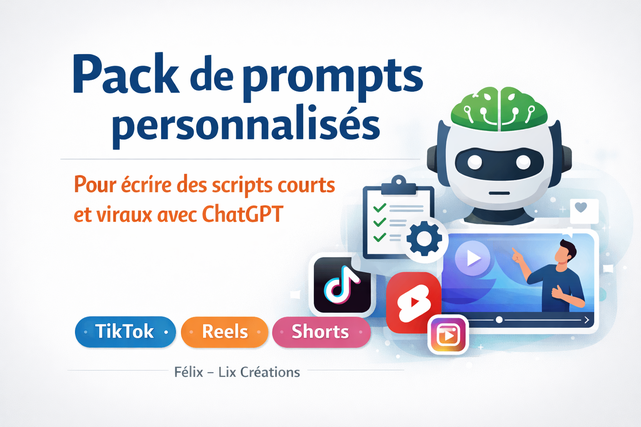 Dans ce service, je vous livre un pack de prompts personnalisés, conçu pour écrire des scripts courts et viraux (TikTok, Reels, Shorts) avec ChatGPT.