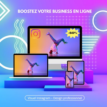Avec mon offre basique, je crée 5 visuels professionnels adaptés à Instagram ou Facebook.