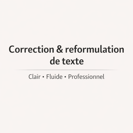Je corrige l’orthographe, la grammaire et reformule vos phrases pour un rendu fluide, clair et professionnel, en respectant votre ton et votre objectif.