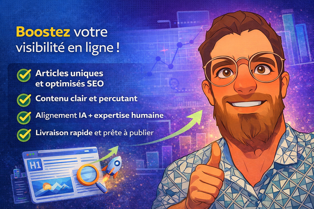 Je rédige pour vous des articles optimisés SEO, alliant intelligence artificielle + expertise humaine, pour des textes efficaces, naturels et performants.