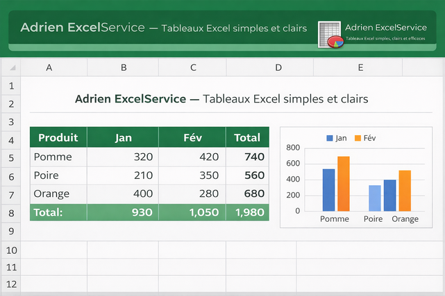 Proposé par AdrienExcelService •Création de tableaux Excel clairs et personnalisés pour votre activité Vente au total 1