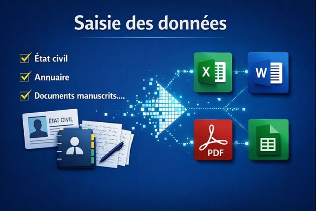 💼 Ce que je peux faire pour vous ⌨️ Saisie de tous types de données Vous avez besoin de données claires, fiables et bien organisées ❓ 🙋🏻♀️ Vous êtes au bon endroit ! Spécialisée en saisie de données rapide, précise et structurée, j’accompagne les professionnels et entreprises dans la gestion et l’organisation de leurs informations. 📑📖 Qu’il s’agisse d’états civils, d'annuaire, de documents manuscrits, de fichiers PDF ou images, je réalise la transcription et la mise en forme dans le format de votre choix : Word, Excel, Google Sheets, etc. ✦ Ce que je vous garantis ✅ Saisie professionnelle, rapide et sans erreurs 🔍 Vérification, correction et mise à jour des données 🗂️ Classement, organisation et harmonisation des documents 🔒 Respect strict de vos consignes et de la confidentialité 👉 Objectif : vous faire gagner du temps avec des données propres, exploitables et prêtes à l’emploi 👉 Sérieuse, méthodique et orientée qualité : je vous aide à gagner du temps grâce à une saisie fiable et professionnelle
