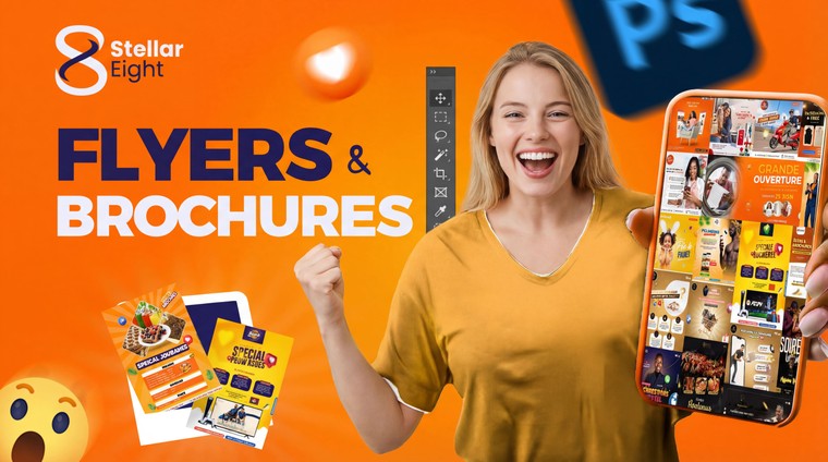 Chez Stellar Eight, nous créons des flyers sur mesure, pensés pour valoriser votre offre et maximiser votre impact visuel.