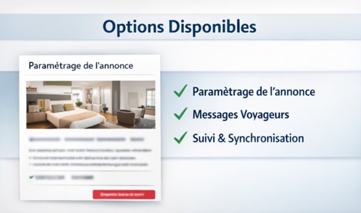 Des options peuvent être ajoutées selon vos besoins, notamment le paramétrage initial de l’annonce et la gestion des messages voyageurs sur une période définie.