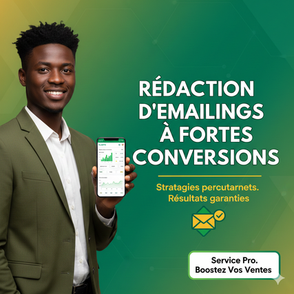 *Expert en Copywriting & email marketing|Pages de Vente Persuasives 🏆 Copywriter professionnel certifié | ✍️ +50 projets réalisés | 🎯 Spécialiste storytelling & email marketing Transformez vos mots en ventes : L'art du copywriting qui convertit. Je suis copywriter spécialisé en pages de vente, storytelling et email marketing, et j'aide les entrepreneurs, créateurs de contenu et marques à transformer leurs mots en ventes. Depuis plusieurs années, j'accompagne des business à clarifier leur message, raconter leur histoire et créer des contenus qui captivent, convainquent et convertissent. Mon objectif : faire de chaque mot un levier de croissance. ✅ Mes expertises : ✅ Pages de vente persuasives qui transforment les visiteurs en clients ✅ Séquences email puissantes qui créent la relation et génèrent des ventes sur pilote automatique ✅ Storytelling stratégique pour donner vie à votre marque ✅ Scripts & contenus marketing adaptés aux codes actuels des réseaux sociaux ✅ Copywriting optimisé SEO pour maximiser votre visibilité ✅ Rédaction publicitaire qui stoppe le scroll et déclenche l'action ✅ Automatisation d'emailing et création de tunnels de conversion Je combine psychologie, simplicité et structure stratégique pour créer du contenu qui se lit, se ressent et incite à l'action. Mon approche : comprendre profondément votre audience, clarifier votre offre et construire un message irrésistible. 🎯 Votre objectif, c'est plus de visibilité, plus d'impact et plus de ventes. Mon travail, c'est de vous y emmener avec les bons mots. 👥 Mon expertise inclut : ✅ Email marketing professionnel (SOTIBE - Depuis Févr. 2024) ✅ Création de pages de vente haute conversion ✅ Réécriture créative et storytelling de marque ✅ Stratégie de contenu pour e-commerce et infopreneurs Mon équipe et moi mettons nos compétences à votre disposition pour la création du système de ventes le plus adéquat à votre activité. Prêt à faire passer votre business au niveau supérieur ? Je suis là pour ça. Contactez-moi dès maintenant, pour qu'on discute de vive voix de votre projet. À très vite de l'autre côté ✍️🚀