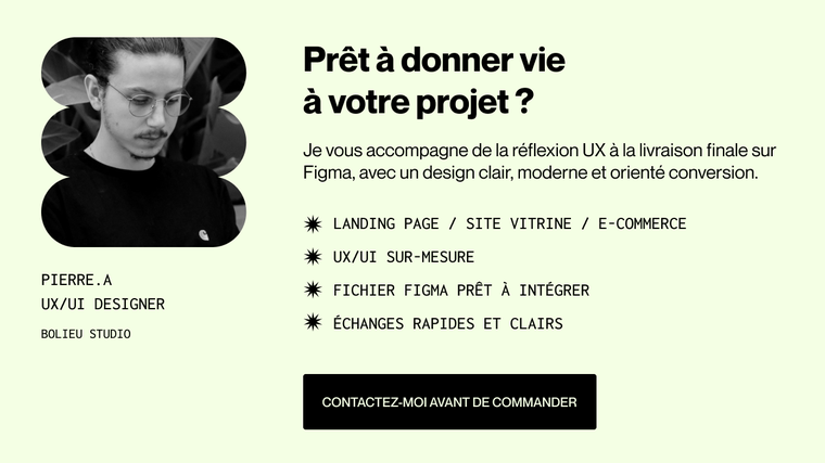 Je conçois des maquettes UX/UI premium sur Figma, pensées pour la conversion et prêtes à être intégrées.