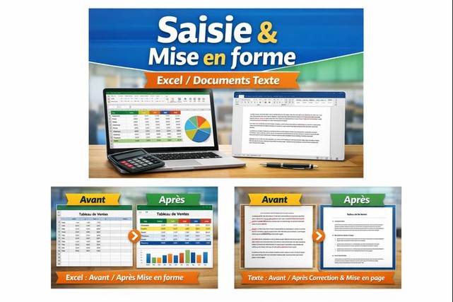Je propose une aide simple et efficace pour la saisie de données, le copier-coller, le tri et la mise en forme sur Excel, Google Sheets, Word ou Google Docs. Je travaille de manière sérieuse et appliquée, avec une attention particulière aux détails et au respect des délais. Mon but est de vous livrer des fichiers propres, faciles à lire et directement utilisables, afin de vous faire gagner du temps au quotidien. Je m’adapte à vos consignes et reste disponible si des ajustements sont nécessaires.