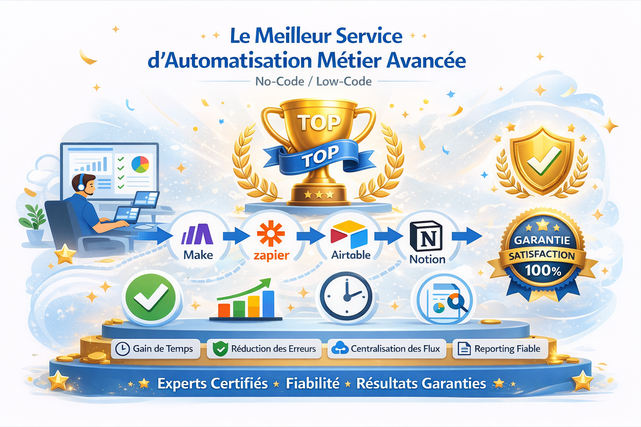 Je transforme vos processus métier en automatisations robustes, claires et mesurables, sans code complexe, en utilisant les meilleurs outils no-code du marché.