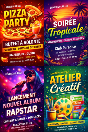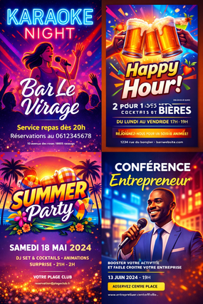 Je suis créateur graphique, spécialisé dans la création d’affiches, flyers et logos 100 % personnalisés, pensés pour refléter votre identité et vos valeurs.