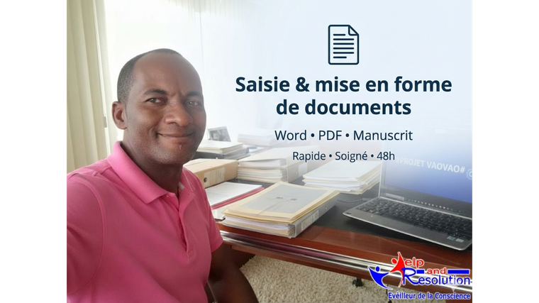 Bonjour, Je vous aide à transformer vos documents en fichiers clairs, propres et professionnels. Vous avez un document manuscrit, un PDF ou un texte mal présenté ? Je m’occupe de la saisie, de la mise en forme et des corrections de base pour que votre document soit prêt à l’emploi. Ce que je fais : – Saisie de texte (PDF, manuscrit, image) – Mise en page Word / Google Docs – Correction simple des fautes – Respect strict de vos consignes – Livraison rapide et soignée Travail sérieux, communication claire, satisfaction client prioritaire. N’hésitez pas à me contacter avant commande.