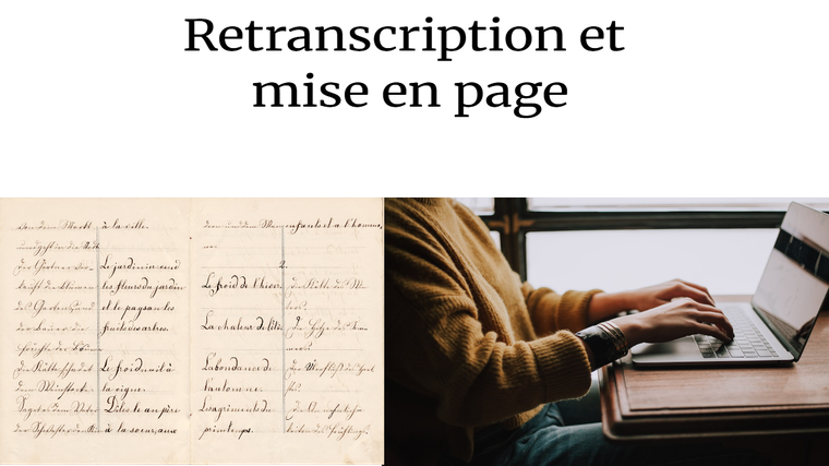 - retranscription fidèle de vos textes (manuscrits ou scannés)