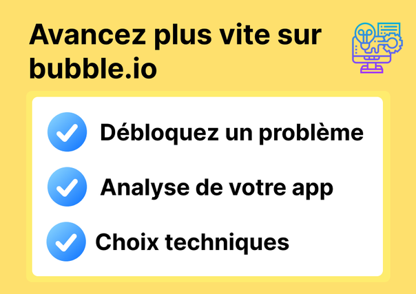 Je suis développeuse experte Bubble.io, spécialisée dans la création d’applications web et mobiles (MVP, plateformes métier, marketplaces, outils internes).