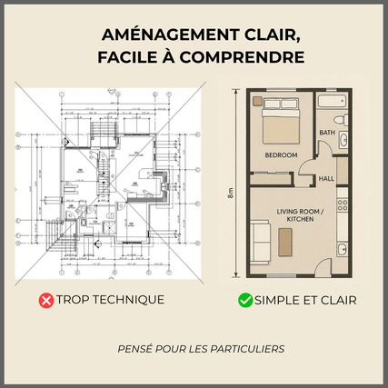 Cependant, mon expérience m'a appris une chose essentielle : la majorité des personnes n'ont pas les connaissances nécessaires pour lire de grands plans techniques et cela crée souvent plus de confusion que de clarté.