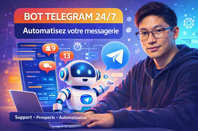 Je développe pour vous un bot Telegram professionnel, prêt à l’emploi, conçu pour structurer votre communication et automatiser ce qui vous fait perdre du temps.