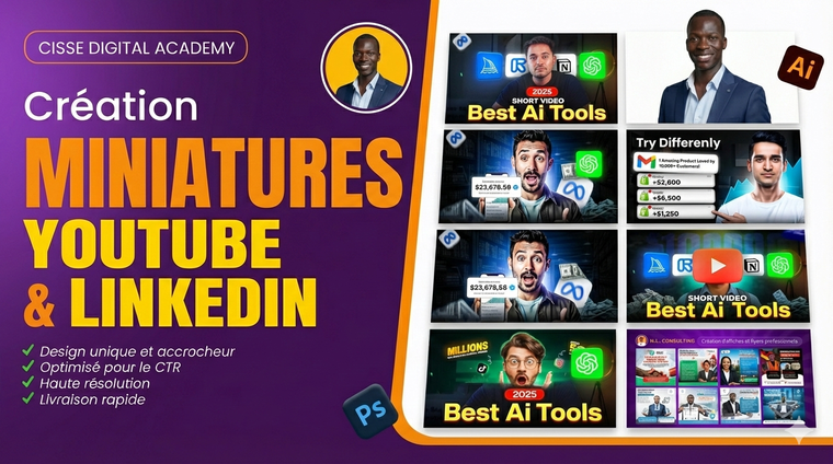Sur YouTube, la miniature est un outil de communication et de positionnement, pas un simple visuel. Ce service s’adresse aux entrepreneurs, coachs et créateurs francophones qui souhaitent une présentation professionnelle, cohérente et adaptée à leur audience, en Europe comme en Afrique.