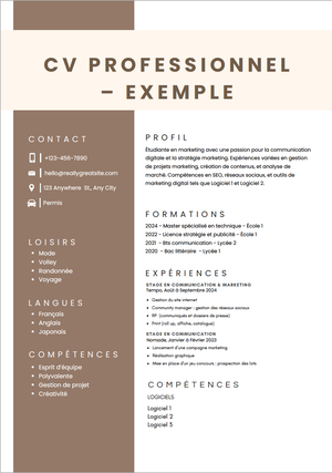 Je vous propose la création d’un CV moderne et lisible, adapté à votre profil.