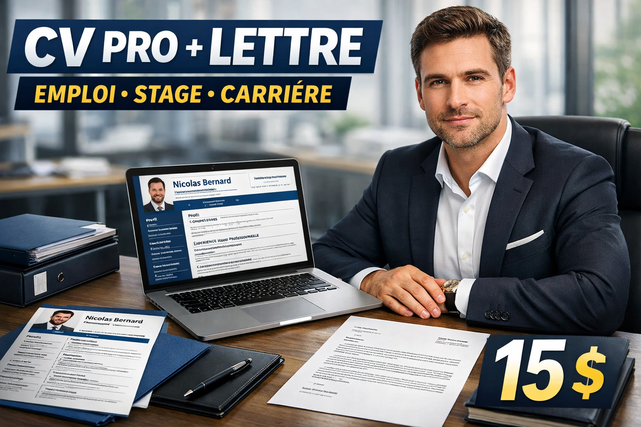 Un bon recruteur met moins de 30 secondes pour juger un CV. C’est pourquoi je vous propose un CV clair, moderne et professionnel, accompagné d’une lettre de demande convaincante, adaptés à votre profil et à votre objectif.