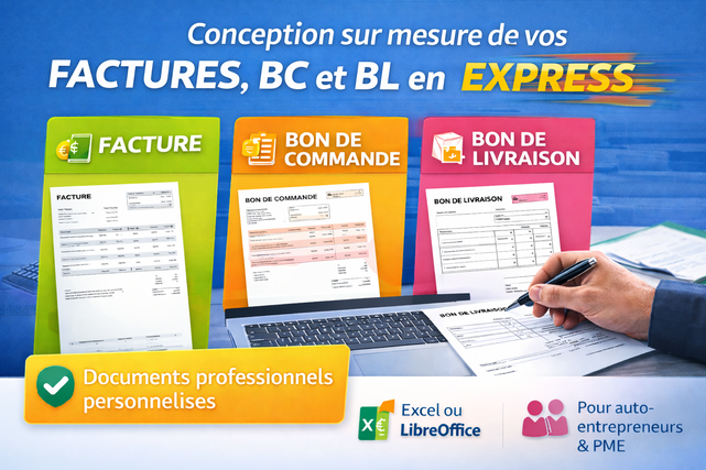 Je vais concevoir vos factures, BC et BL clairs et professionnels