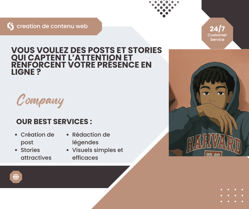 vous voulez des contenus web qui captent l’attention et engagent votre audience je suis votre créateur de contenu spécialisé dans les post, stories, articles et visuels pour petites entreprises, influenceurs et freelances